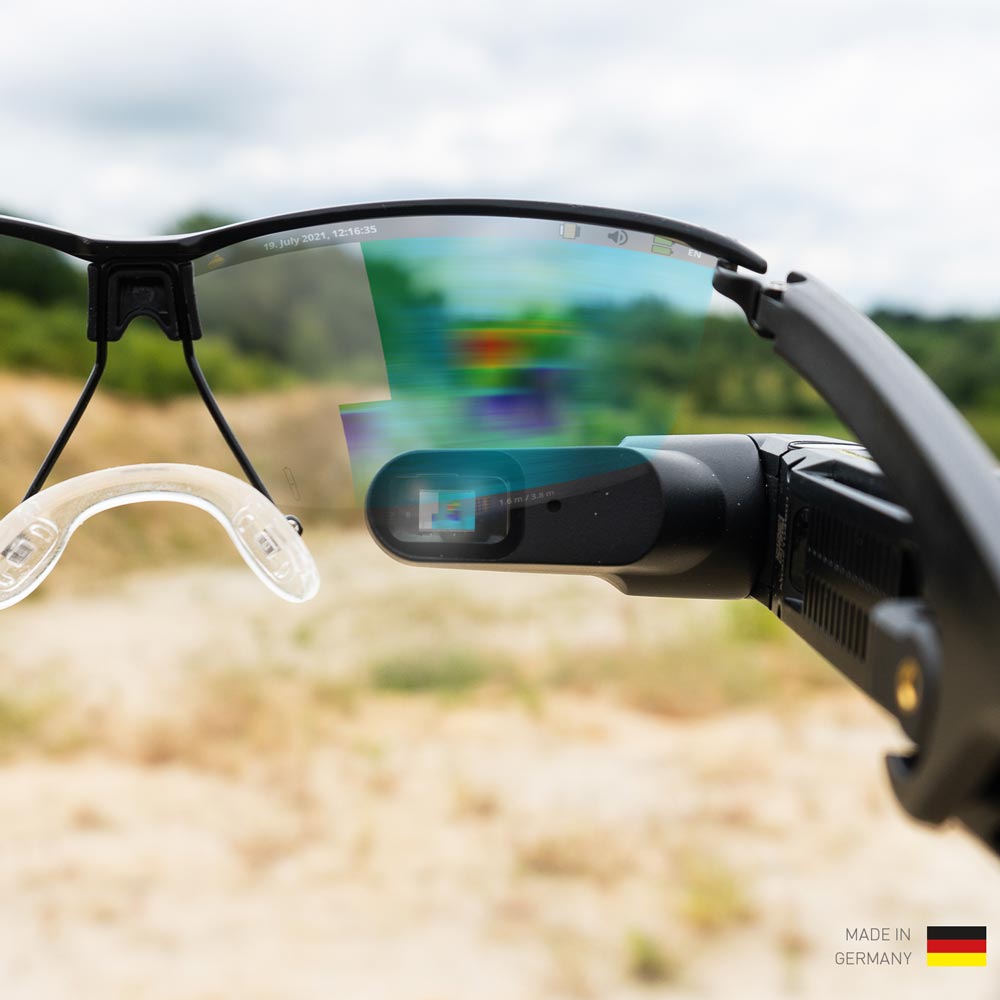 Besides the touchscreen, the eXp 6000 ground scanner user can also control the metal detector with the optional Video Eye Glasses. This allows the treasure hunter to focus even better on the environment and to notice any obstacles in the scan field during the measurement. In the projection directly in front of his eye, he simultaneously receives the already recorded scan data.