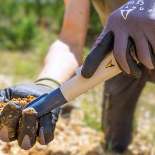 To do this, the 360° detection tip of the Pinpointer is inserted directly into the excavation hole or the excavated material. As soon as a metal object is in the immediate vicinity of the tip, the Pinpointer triggers an audio and vibration alarm. The closer the pinpointer gets to the metal object, the faster the sound pulses or the stronger the vibration intensifies. Vibration and audio feedback can also be optionally turned off to match the search location or to extend battery life.
