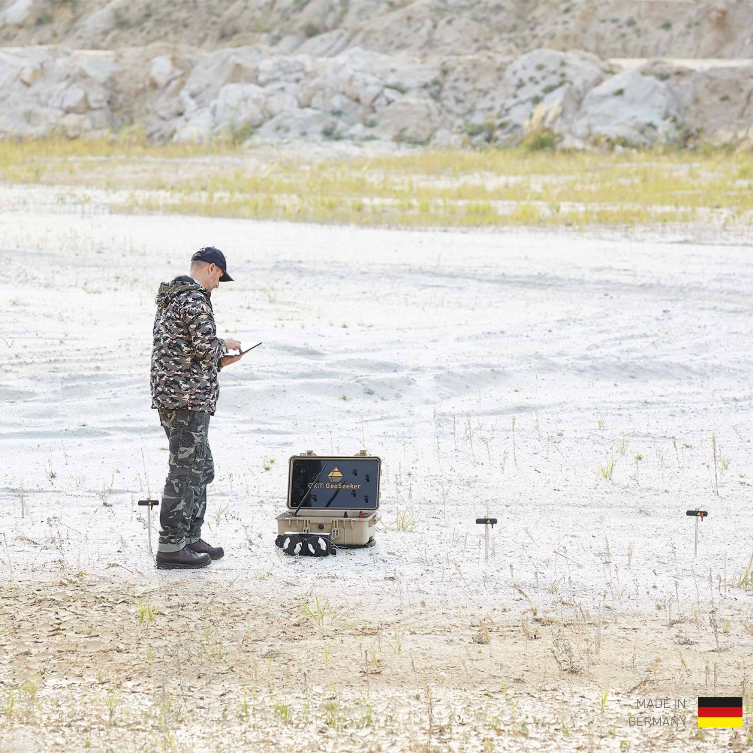 Are you looking for underground water resources or hidden cavities up to depths of 250 meters (820 ft)? GeoSeeker is a professional geoelectrical water detector and cavity detector that measures the ground resistivity and visualizes its scan data in incredible 3D graphics. It is a very mobile and easy to operate geoelectrical detector designed and manufactured in Germany.