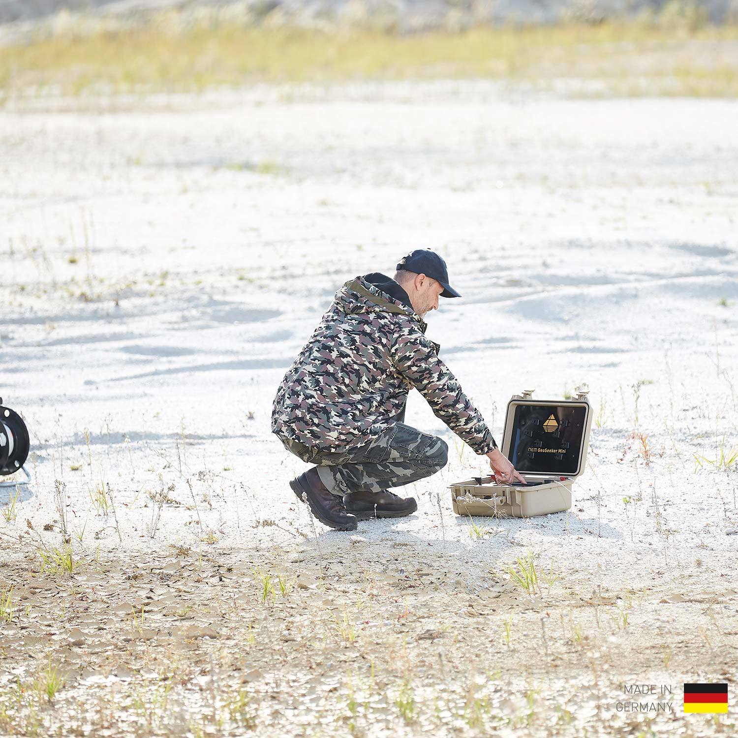 The geoelectrical detector OKM GeoSeeker Mini can be used to detect underground water resources as well as hidden cavities. Both structures can be located due to its specific characteristics of electrical resistivity.