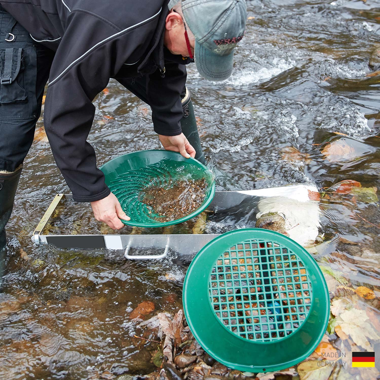 If a reasonable place with enough gold content has been detected, the experienced gold seeker, prospector or miner can get ready for the gold panning process to get the gold out of the ground. Find additional information in our blog post about gold panning.